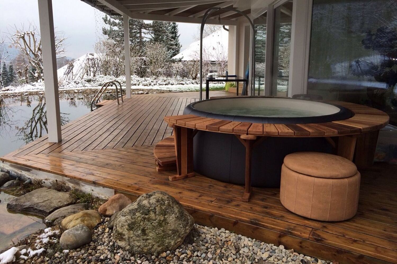Lederoptik, Umrandungen, moderne Außenfarben und praktische, schicke Accessoires – Softub überzeugt mit stilvollem Design in hoher Qualität.